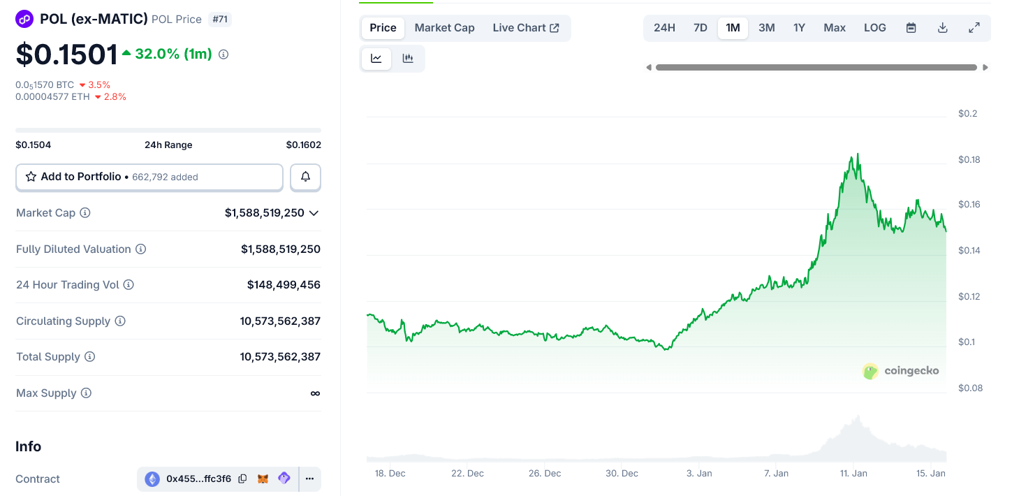 Эти преобразования отражаются и на рынке. Нативный токен POL резко вырос в последние недели.