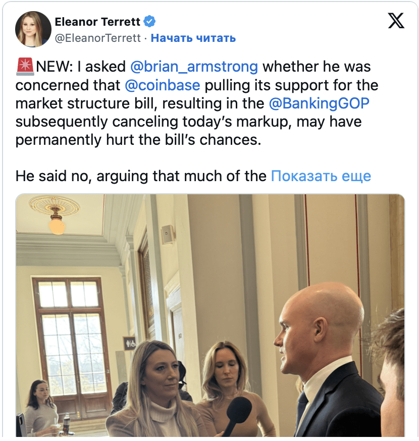 Несмотря на возникшие сложности, председатель Банковского комитета Тим Скотт сохраняет оптимизм. В своих социальных сетях он отметил, что продолжает вести конструктивный диалог с представителями индустрии и коллегами по Конгрессу. Однако на текущий момент Coinbase остается наиболее влиятельным критиком предложенных норм.